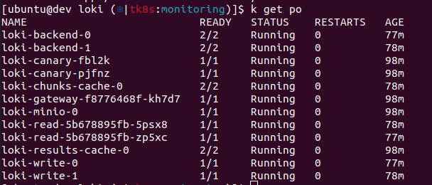 helm install loki grafana/loki -n monitoring -f values.yaml